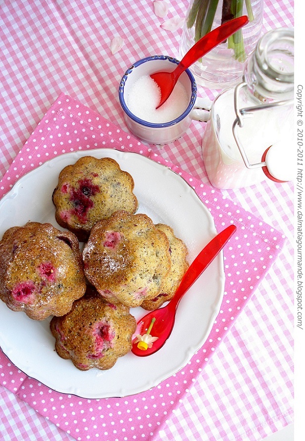 Brush teacake molds (or a muffin mold) with 1 tablespoon of olive oil and sprinkle them with a little flour. Set aside.