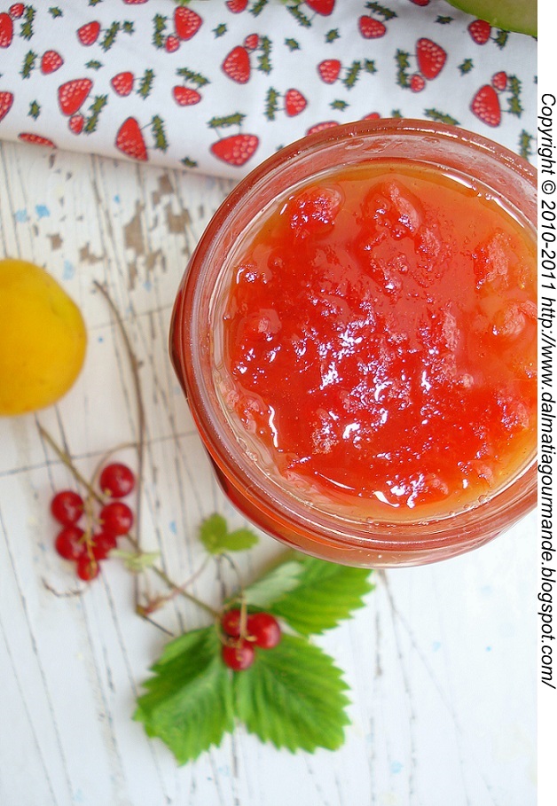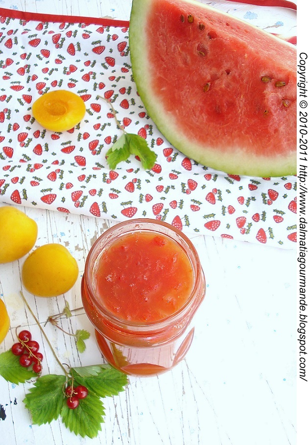 @ Mel, probala sam slatko od kora od lubenice što me zapravo i natjeralo da napravim ovaj džem. Iskreno priznajem da bi i to bila napravila ali mi se nije dalo slijediti proceduru od kuhanja bijele kore pa prolijevanja vode i ponovnog ukuhavanja, i tako po 6 puta...