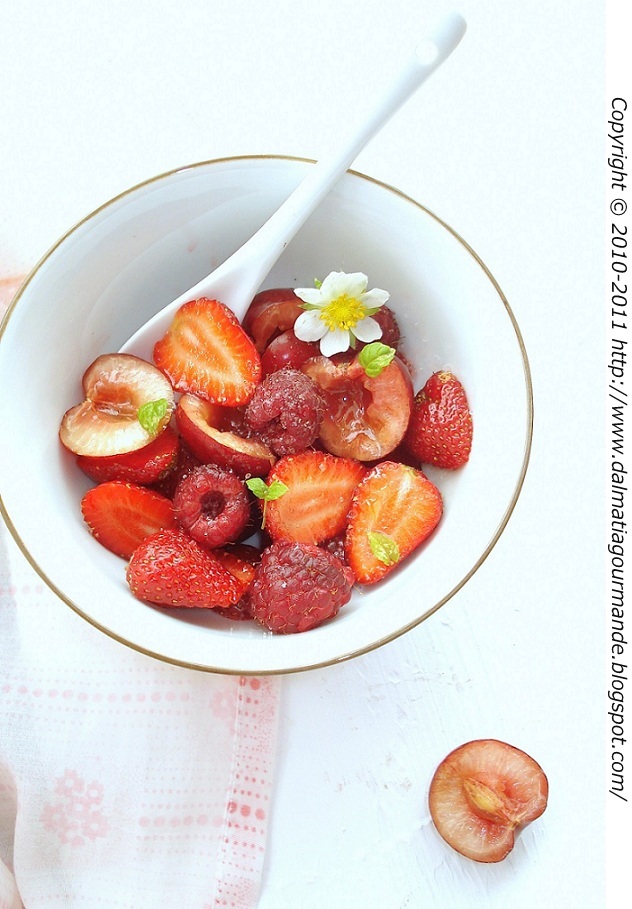 7. Koje prekrasne boje, čisti užitak za oči Majo! Sladoled obavezno isprobavam, mada sumnjam da će mi se "dati" miješati 8 puta... :) Krajnje je vrijeme za nabavku aparata za sladoled!;) A voćna salata sa sezonskim voćem, nema ništa ljepše. Dodatak bourbon vanilin šećera i ekstrakta naranči mu daje posebnu notu. Divno!